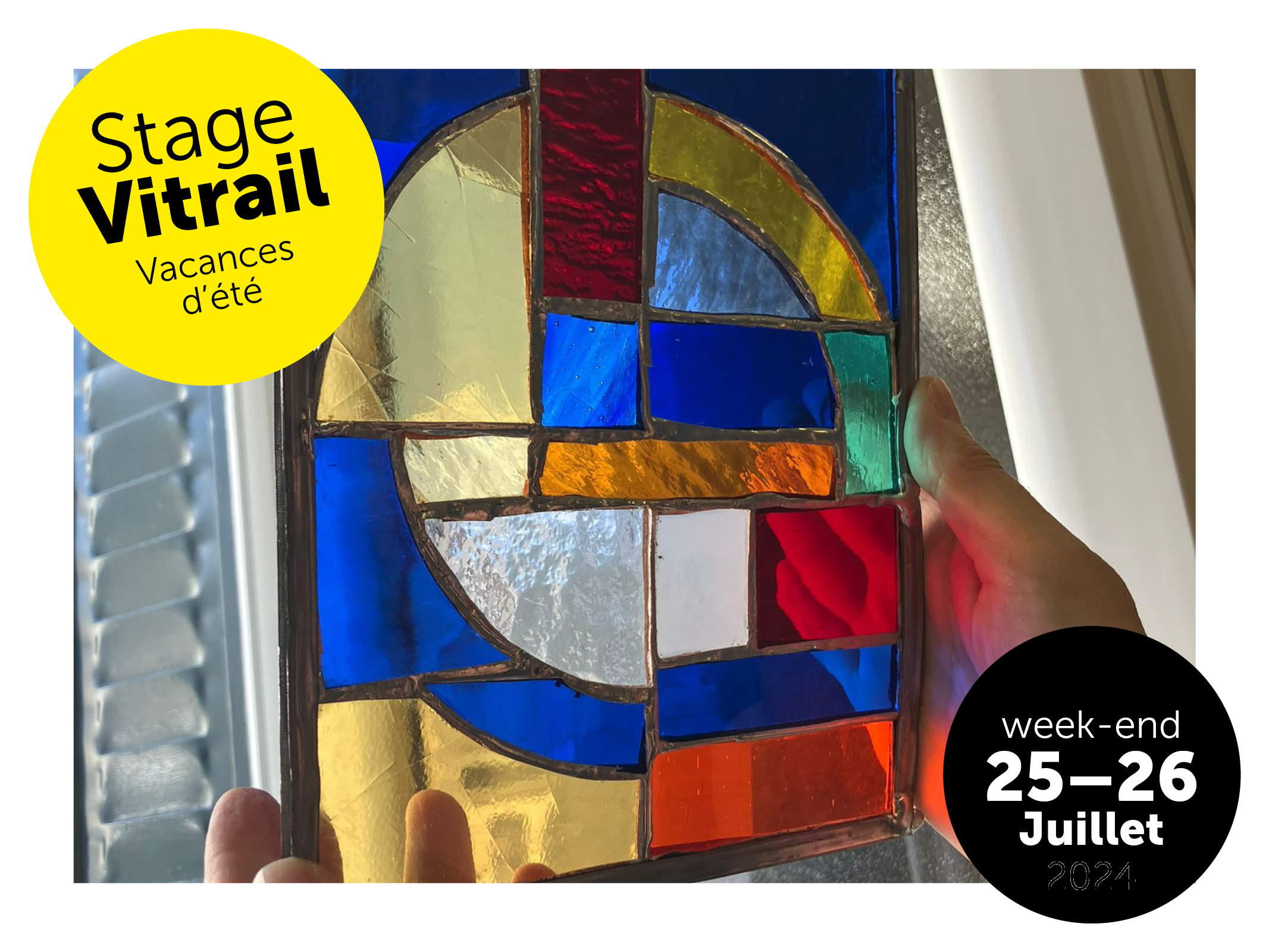 Au cours du week-end vous apprendrez la maitrise des outils spécifiques à l’art du vitrail, et réaliserez un vitrail dont vous serez fier d’être le créateur. Geste après geste, vous vous familiariserez avec les techniques des maitres verriers qui excellent à apprivoiser et jouer avec la lumière.